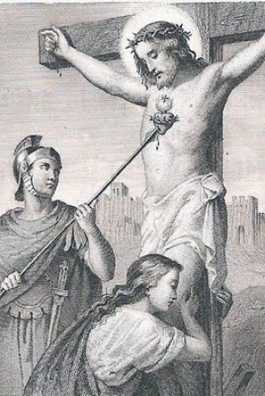 After receiving this prayer, Sister Mary of St. Peter was given in a vision which she saw the Sacred Heart of Jesus delightfully wounded by the "Golden arrow", as torrents of graces from streamed from It for the conversion of sinners.