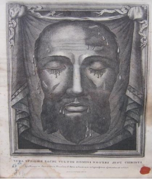 True copy if the picture of the Holy Face of OurLord Jesus Christ, venerated and presented in the Basilica of St. Peter, Rome