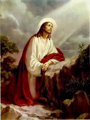 Then Jesus came with them into a country place which is called Gethsemani; and he said to his deciples: Sit you here, till go yonder and pray. Then saith to them: My soul is sorrowful even unto death: stay you here, and watch with me. And going a little further, he fell upon his face, praying, and saying: My Father, if it be possible, let this Chalice pass from me. Nevertheless not as I will, but as thou wilt. And he cometh to his disciples, and findeth them asleep, and he saith to Peter: What ? Could you not watch one hour with me ? (St. Matt.26: 36,38,39,40)