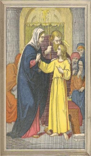 And after the days of her purification, according to the law of Moses, wee accomplished, they carried him to Jerusalem, to present him to the Lord: And to offer a sacrifice according as it is written in the law of the Lord, a pair of turtledoves, or two young pigeons: And behold there was man in Jerusalem named Simeon, and this man was just and devote, waiting for the consolation of Israel; and the Holy Ghost was in him. And Simeon blessed them, and said to Mary his mother: Behold this child is set for the fall, and for the resurrection of many in Israel, and for a sign which shall be contradicted. (Luke 2: 22,24,25,34)