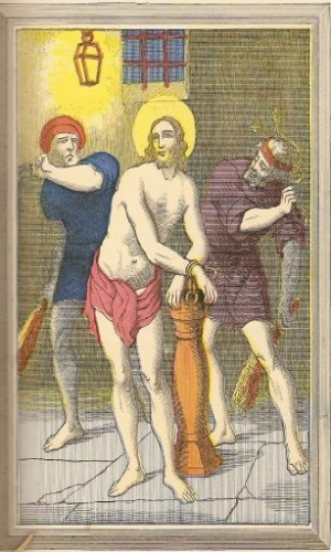 Pilate therefore said to him: Art thou a king then ? Jesus answered: Thou sayest that I am a king. For this was I born, and for this came I into the world; that I should give testimony to the truth. Everyone that is of the truth, heareth my voice. Pilate saith to him: What is truth ? And when he said this, he went out again to the Jews, and saith To them: I find no cause in him. But you have a custom That I should release one unto you at the pasch: will you, Therefore, that I release unto you the king of the Jews ? Then cried they all again, saying not this man, but Barabbas. Now Barabbas was a robber. Then therefore Pilate Took Jesus, and scourged him. (St. John 19: 37-40)