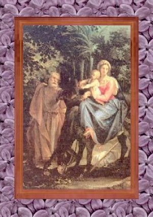 2. I grieve for you, O Mary most sorrowful, in the anguish of your most affectionate heart during the flight into Egypt and your sojourn there. Dear Mother, by your heart so troubled, obtain for me the virtue of generosity, especially toward the poor, and the gift of piety.