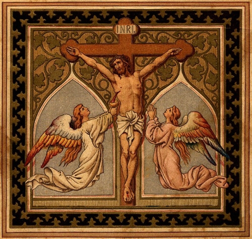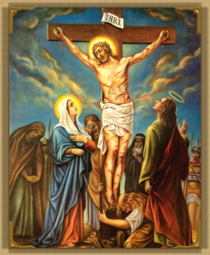 For three hours has Jesus hung upon His transfixed hands His blood has run in streams down His body, and bedewed the ground ; and in the midst of excruciating sufferings, He has pardoned His murderers, promised the bliss of paradise to the good thief, and committed His blessed Mother and beloved disciple to each other's care. All is now consummated; and meekly bowing down His head, He gives up His Ghost.