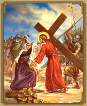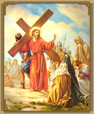 At the sight of the sufferings of Jesus some of the holy women in the crowd were so touched with sympathy that they openly bewailed and laminated Him. Jesus knowing the things that were to come to pass upon Jerusalem because of their rejection of Him, turned to them and said: "Daughter of Jerusalem, weep not for Me, but weep for yourselves and for you children."